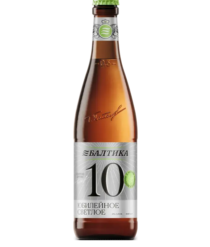 — «Балтика 10 Юбилейное», в стеклянной бутылке объёмом 0,5 л.;