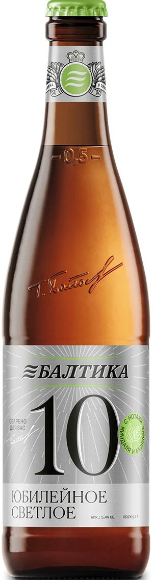 — пивной напиток «Балтика № 10 Юбилейное», в стеклянной бутылке объёмом 0,5 л.