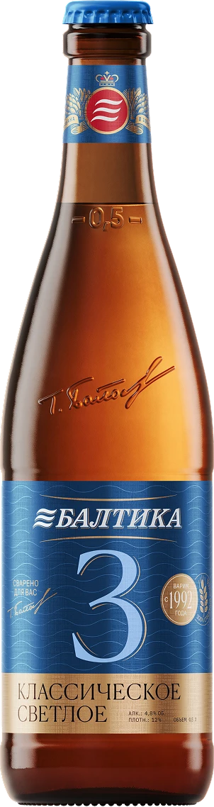 — пиво светлое «Балтика Классическое» № 3, в стеклянной бутылке объёмом 0,5 л.;