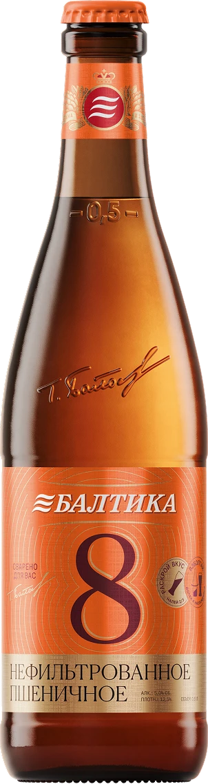 — пиво светлое нефильтрованное неосветленное «Балтика пшеничное» № 8, в стеклянной бутылке объёмом 0,5 л.;